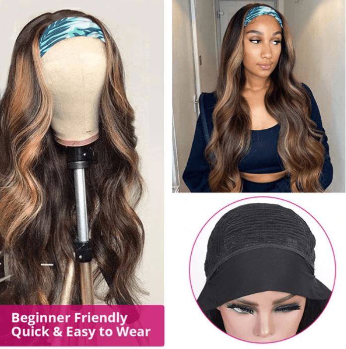 Item: MyPlushWigs Highlight With Headband Body Wave Human Hair Wig