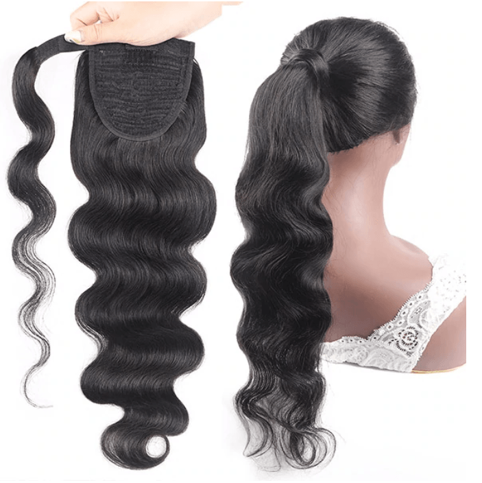 Item: Body Wave Long Wavy Wrap Around Clip In Ponytail Hair Extension Brazilian Remy Human Hair