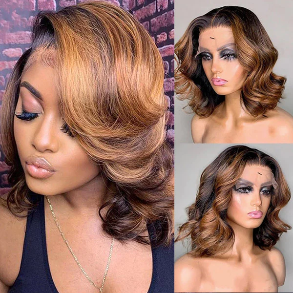#P4/27 Honey Blonde Highlight Short Bob 13x4 Lace Wig