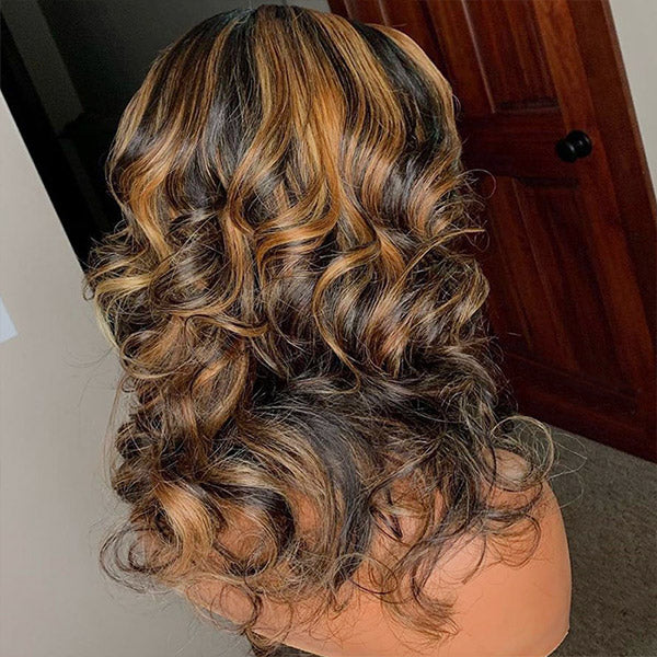 Pack: 1 Piece #P4/27 Honey Blonde Highlight Short Bob 13x4 Lace Wig Cap in the box